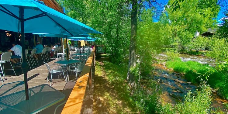 Dine beside the Frying Pan River in Basalt. Open for lunch and dinner.