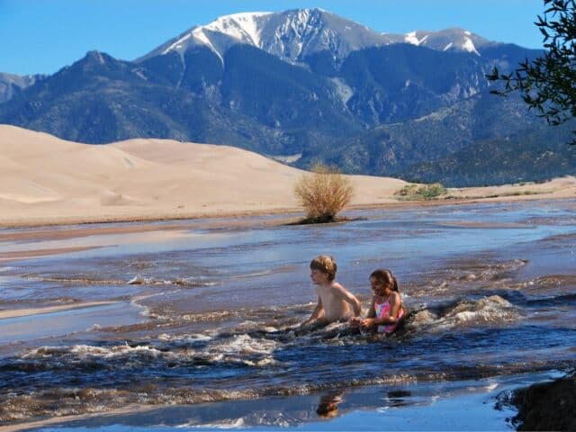 Back on the sand, set up some chairs and an umbrella along Medano Creek. This special creek only runs during the spring and offers a delightful experience…
