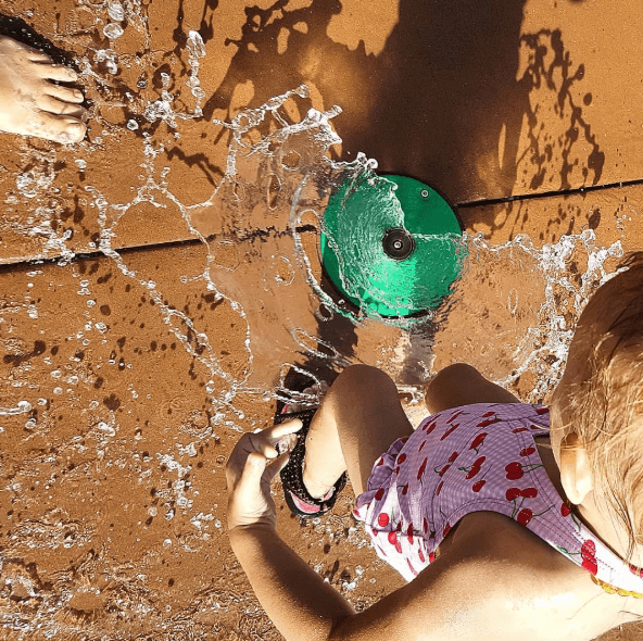 Kids can cool off at the splash pad at John Venezia Park while grown-ups take in stunning mountain views.